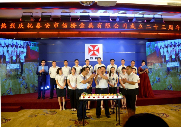 8月8日,泰安市信橋金屬有限公司成立二十三周年慶在泰安帝苑大廈多功能廳舉行。