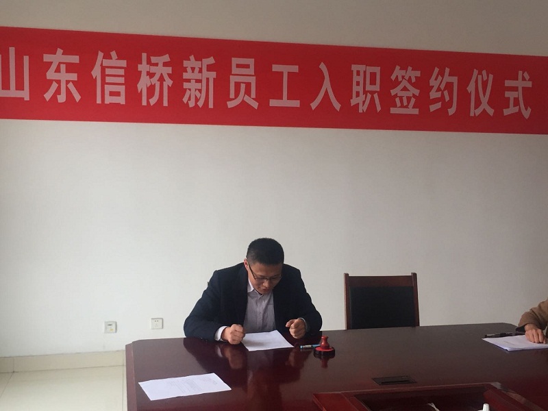 2018年11月30日下午3點(diǎn),新員工入職簽約儀式在泰安信橋二樓會(huì)議室舉行,公司副總石振偉與新員工李佳欣參加,同時(shí)公司財(cái)務(wù)總監(jiān)張燕與人事人員出席。