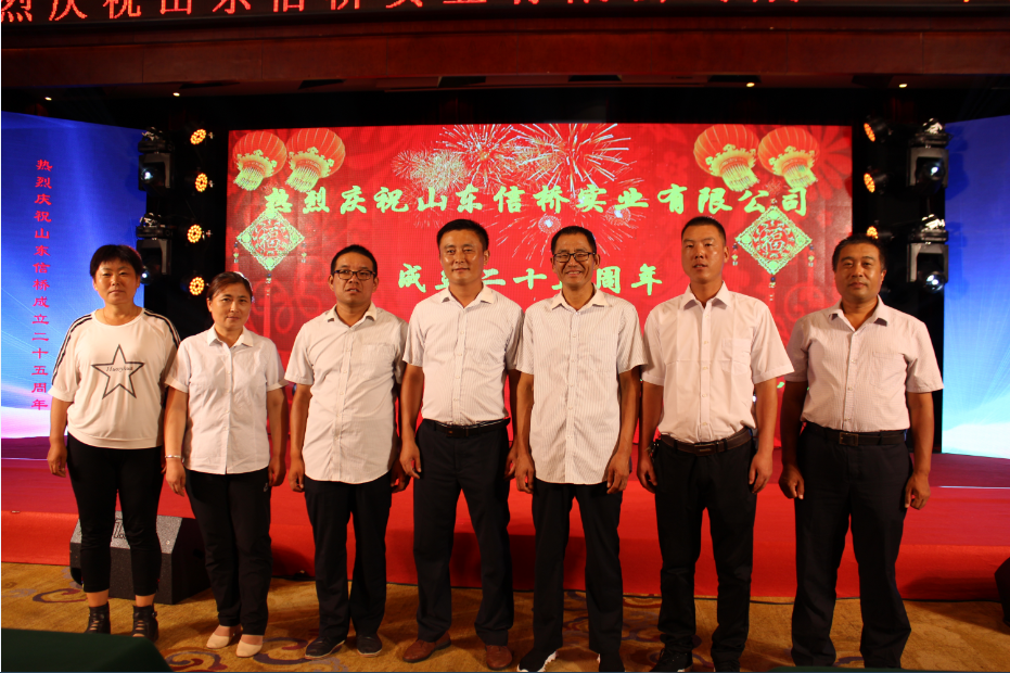 歲月如歌,風(fēng)霜如畫,二十五年彈指一揮間,山東信橋?qū)崢I(yè)有限公司(以下簡(jiǎn)稱山東信橋)迎來了二十五周年的生日。二十五年來,信橋人在激烈的市場(chǎng)競(jìng)爭(zhēng)中奮力拼搏、砥礪前行,接受了市場(chǎng)風(fēng)風(fēng)雨雨的洗禮,取得了累累碩果。為了慶祝這一特殊的日子,2019年8月8日,以“感恩同行,共贏未來”為主題的山東信橋二十五周年慶典活動(dòng)在帝苑酒店舉行。