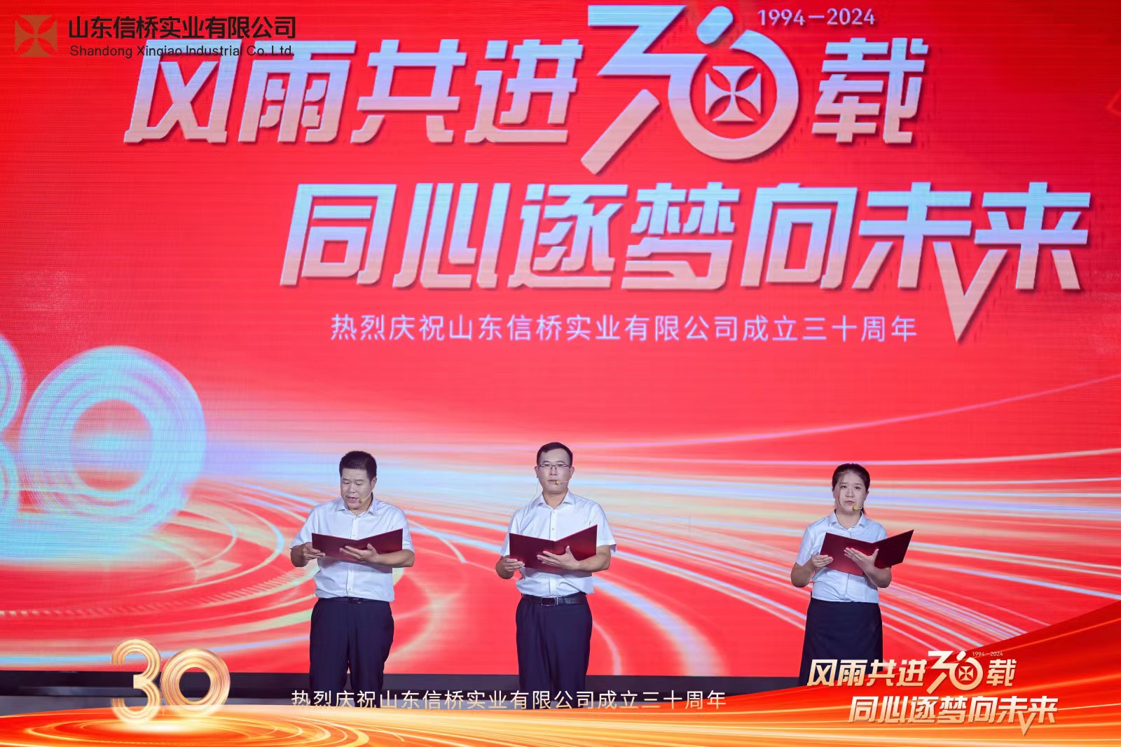 四位主持帶來詩朗誦《30而立,行穩(wěn)致遠》,隨后,全體信橋員工帶來大合唱《信橋之歌》。